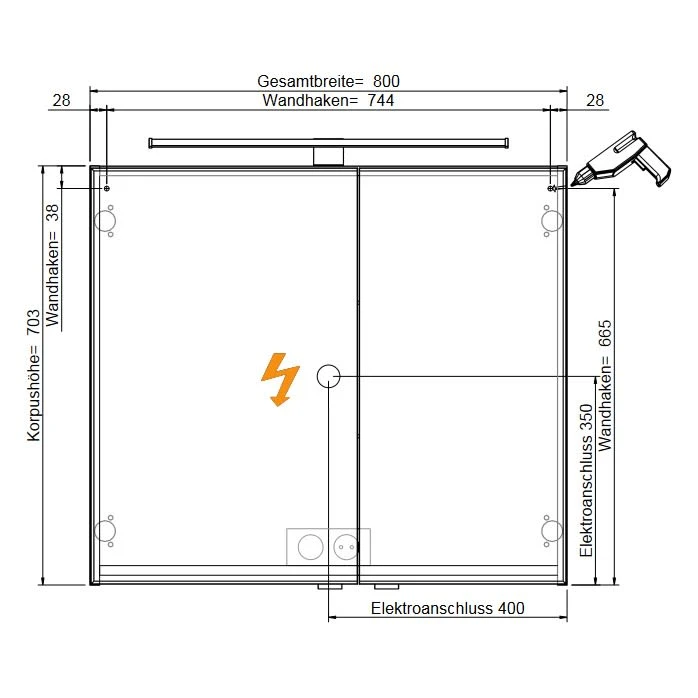 - Türaufteilung: links 45 cm, rechts 35 cm
