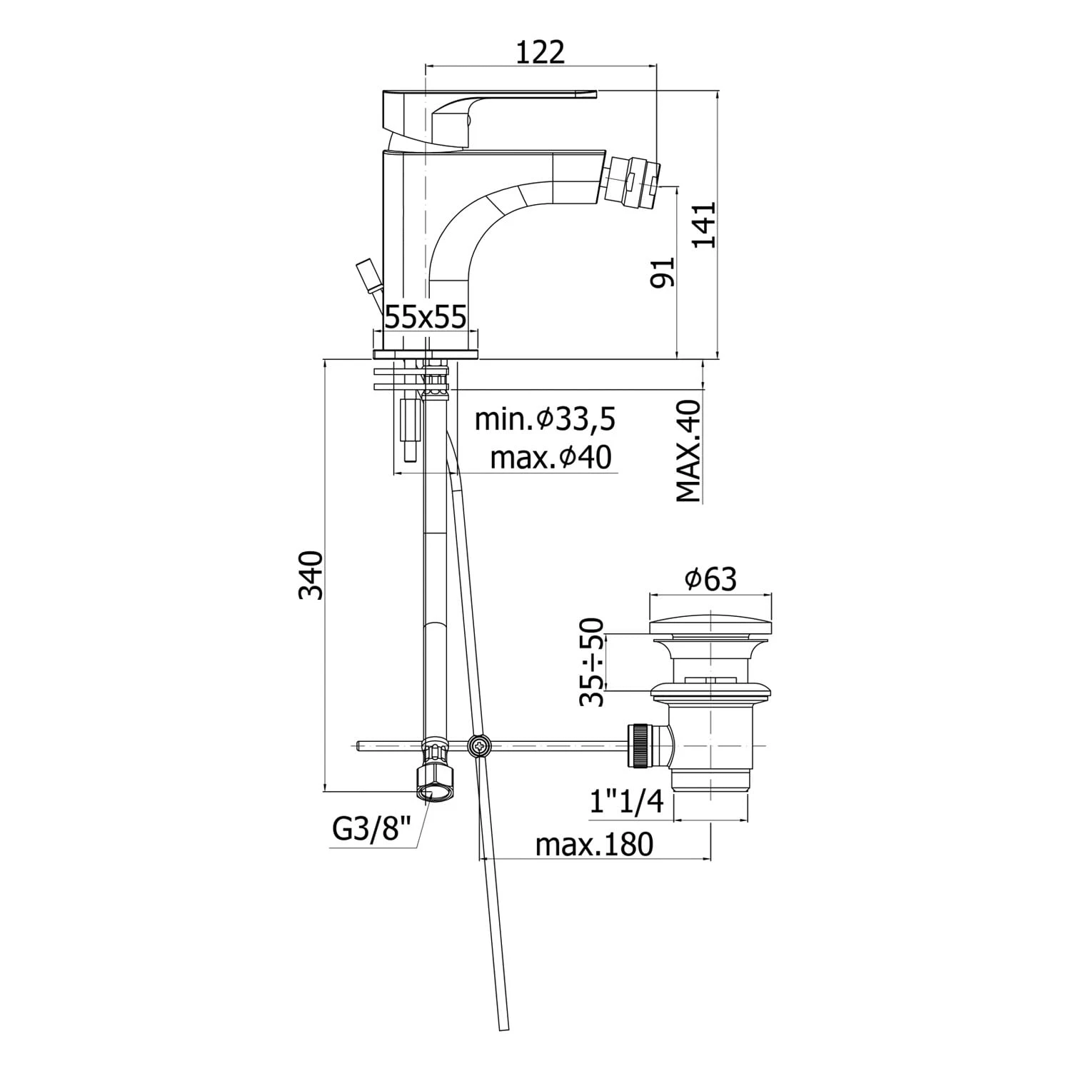 Steinkamp Joy Bidetarmatur, mit Ablaufgarnitur