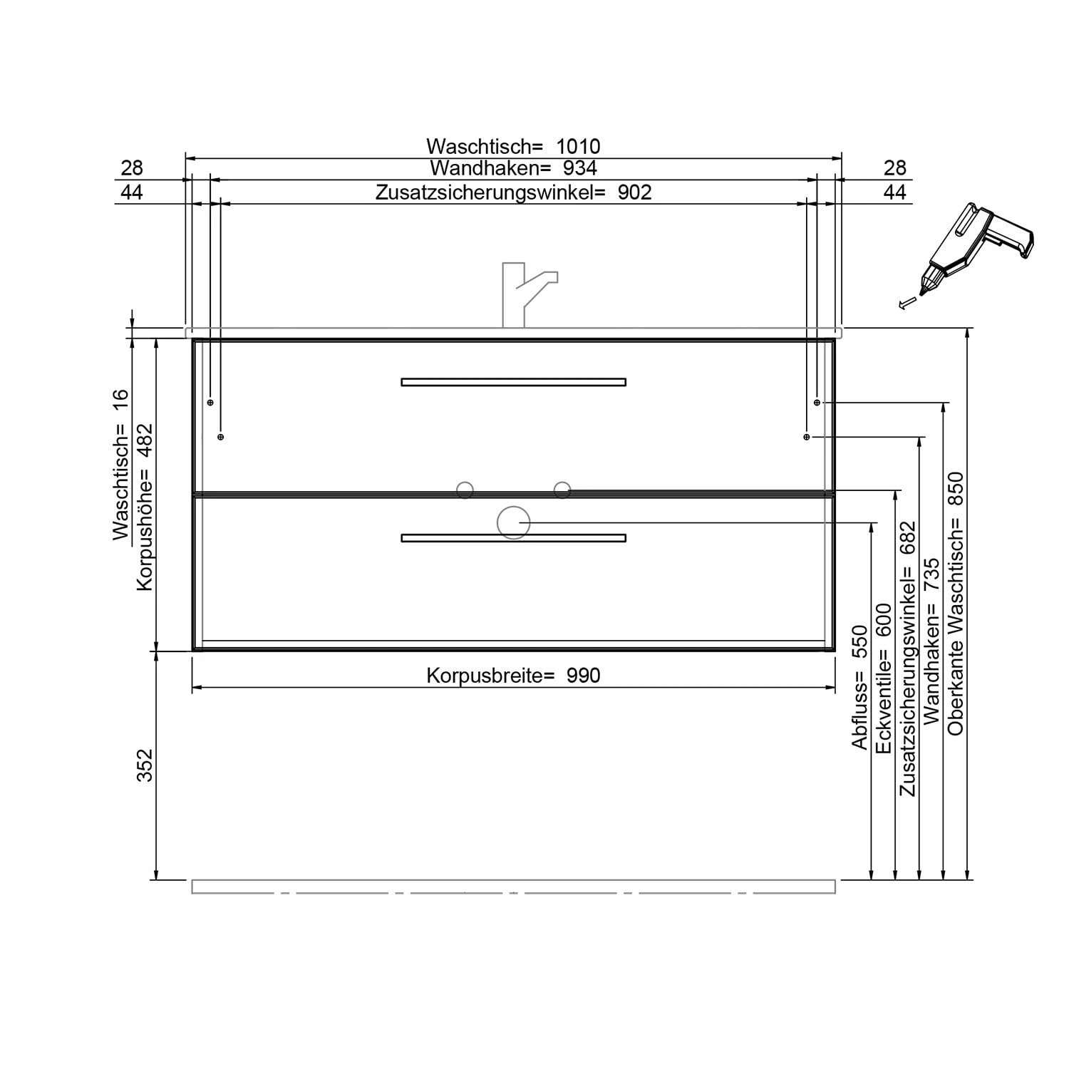 - Waschtisch und Waschtischunterschrank