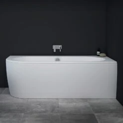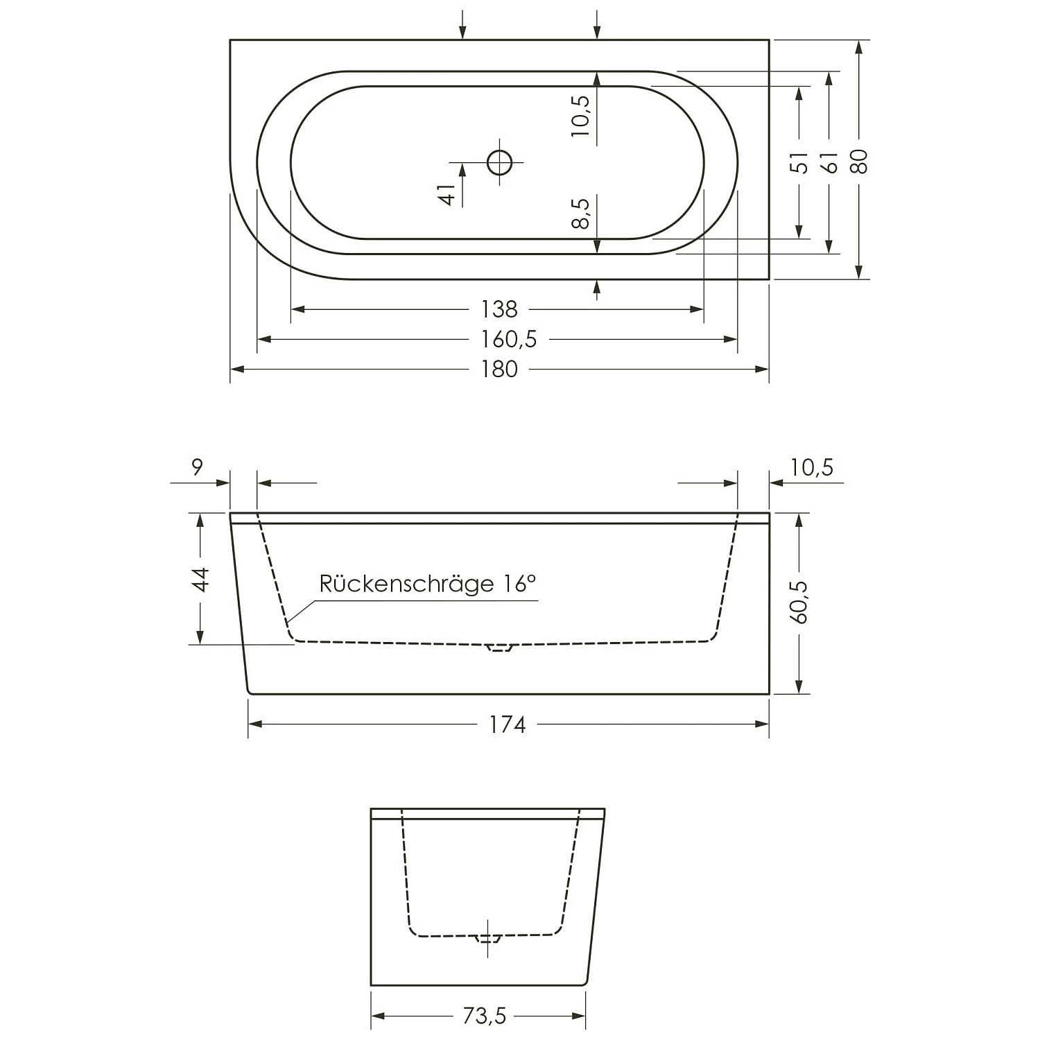 Steinkamp Life Eckbadewanne 180 x 80 cm links mit Schürze und MT5 Ab- und Einlaufgarnitur