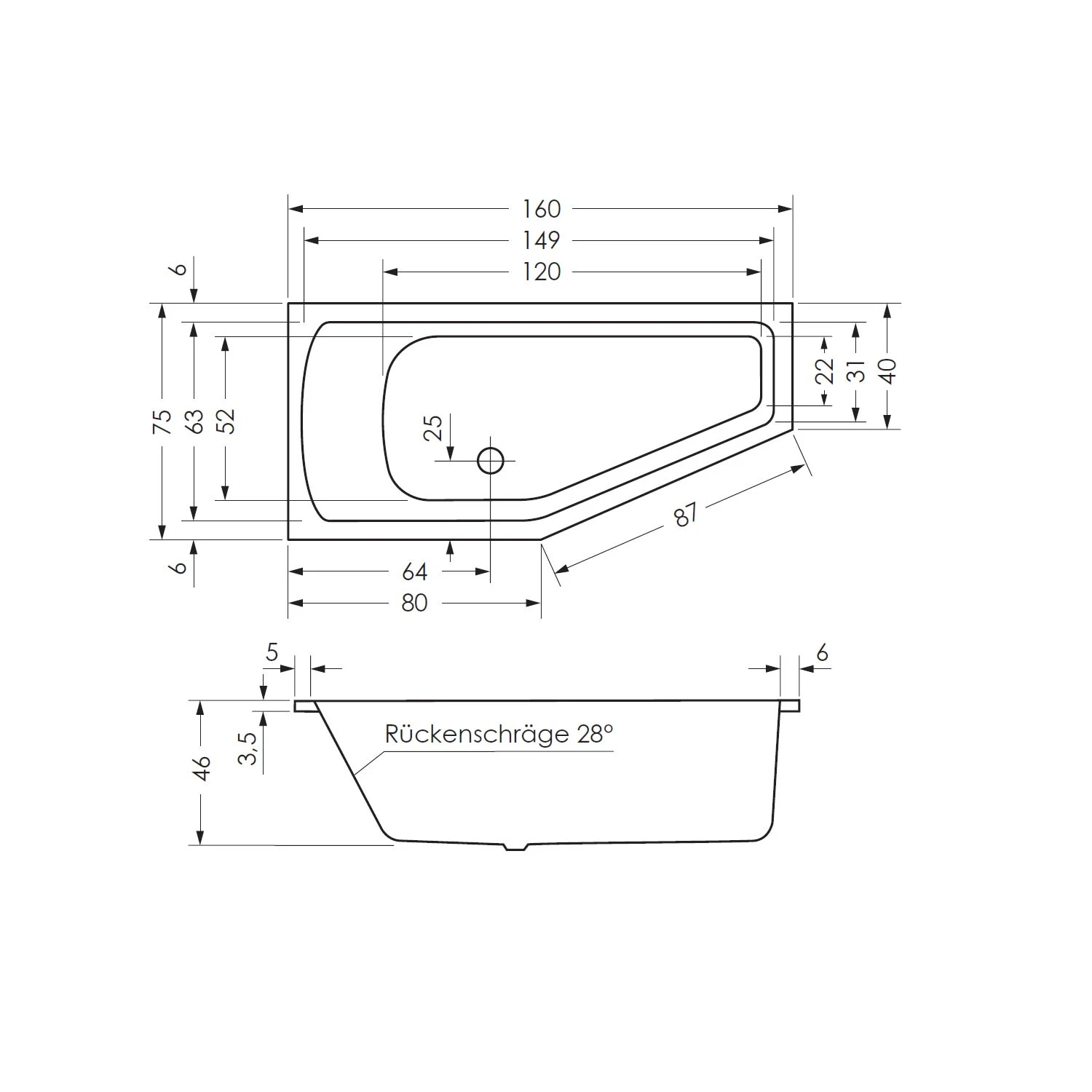 Steinkamp Life Raumsparbadewanne 160 x 75 cm, rechts