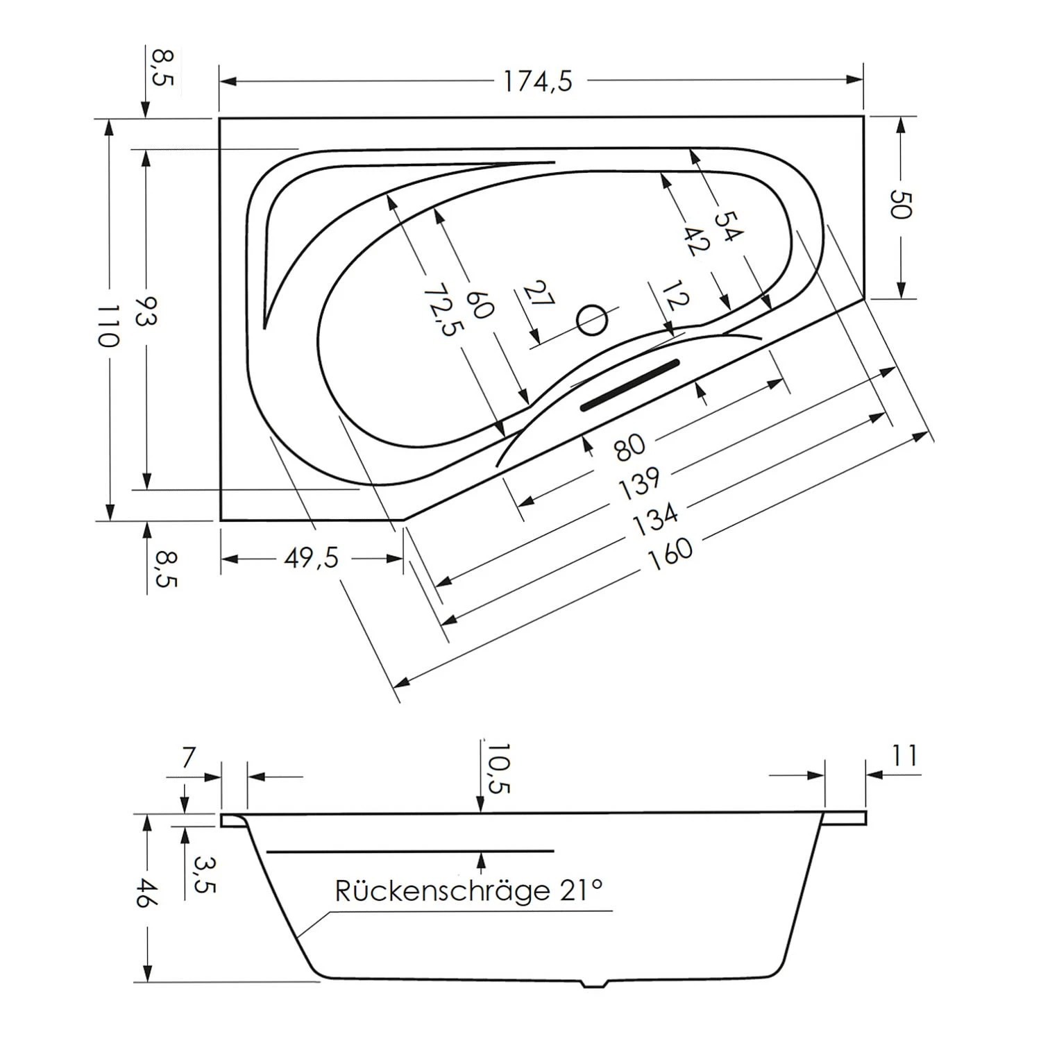 Steinkamp Life Raumsparbadewanne 175 x 110/50 cm rechts