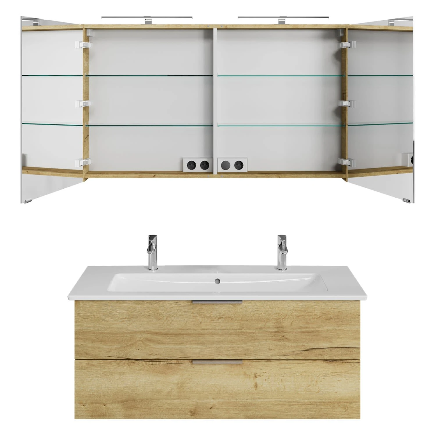 Steinkamp Living 2.0 / Villeroy & Boch Venticello CeramicPlus Badmöbel Set 120 cm mit Spiegelschrank, 2 Drehtüren