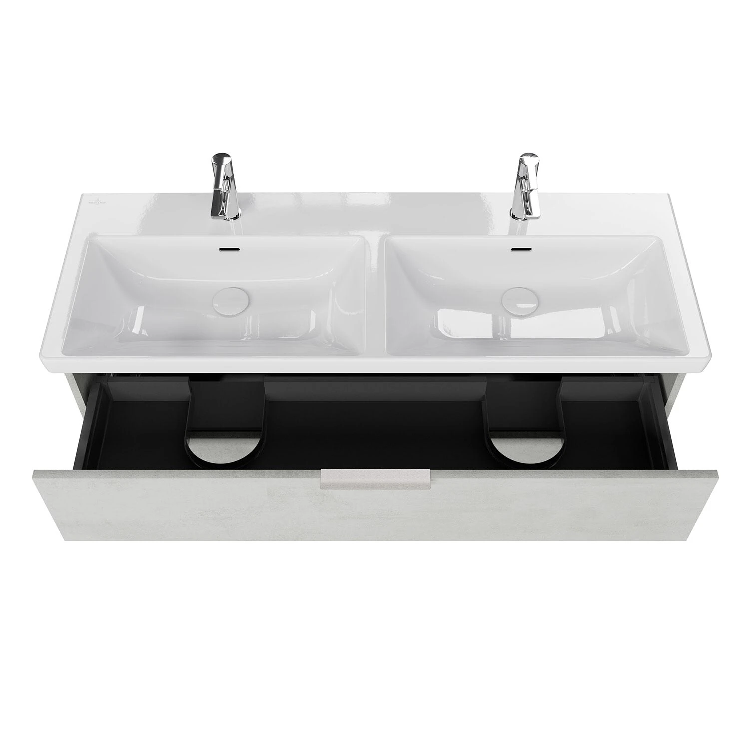 Steinkamp Living 2.0 Waschtischunterschrank 125 cm mit Villeroy & Boch Subway 3.0 Doppel-Waschtisch 130 cm CeramitPlus mit Überlauf