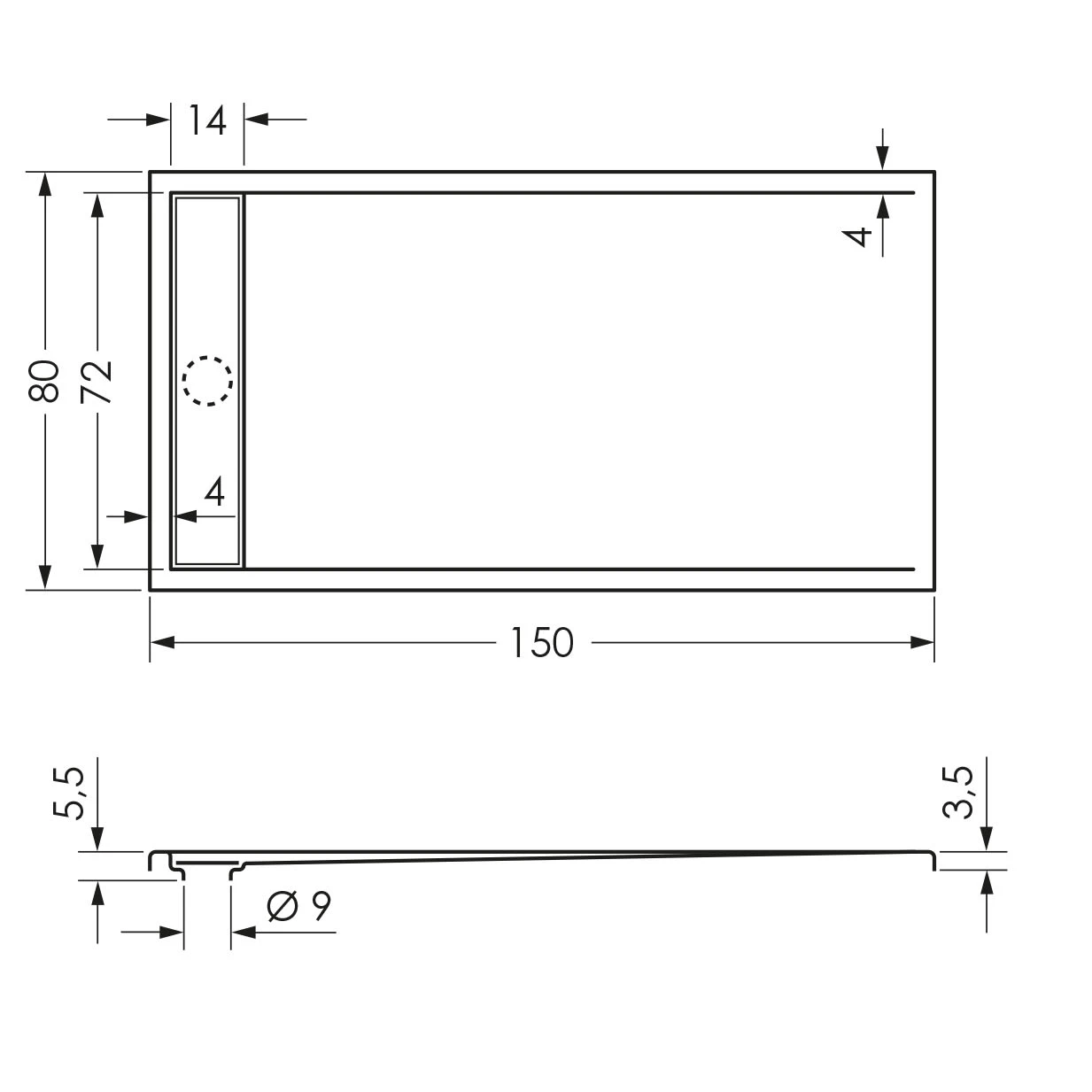 Steinkamp Living Duschwanne 150 x 80 cm mit Ablaufrinne, superflach