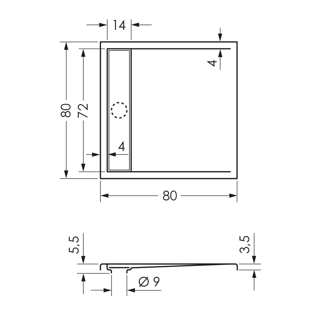 Steinkamp Living Duschwanne 80 x 80 cm mit Ablaufrinne, superflach