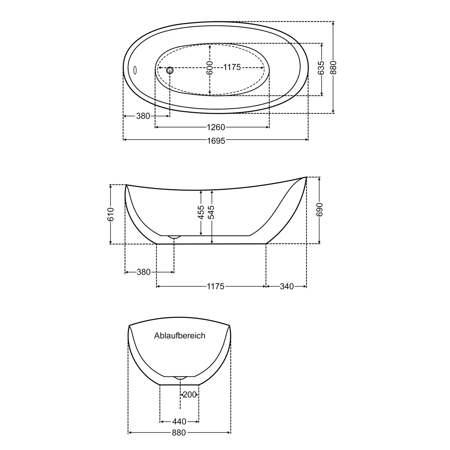 Steinkamp Loft freistehende Ovalbadewanne 169,5 x 88 cm