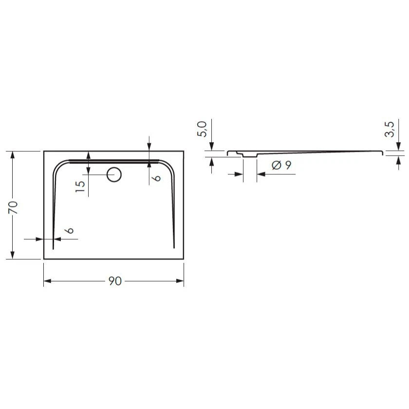 Steinkamp Plan Duschwanne 90 x 70 cm superflach