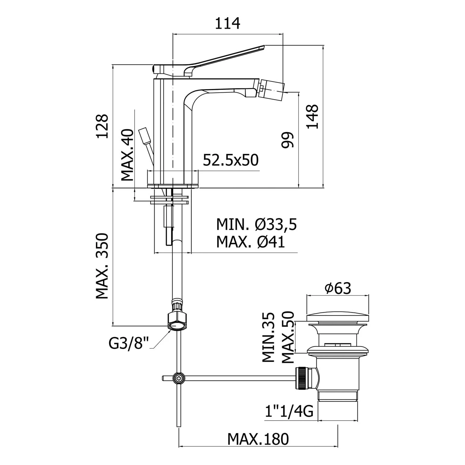 Steinkamp Value Bidetarmatur mit Ablaufgarnitur