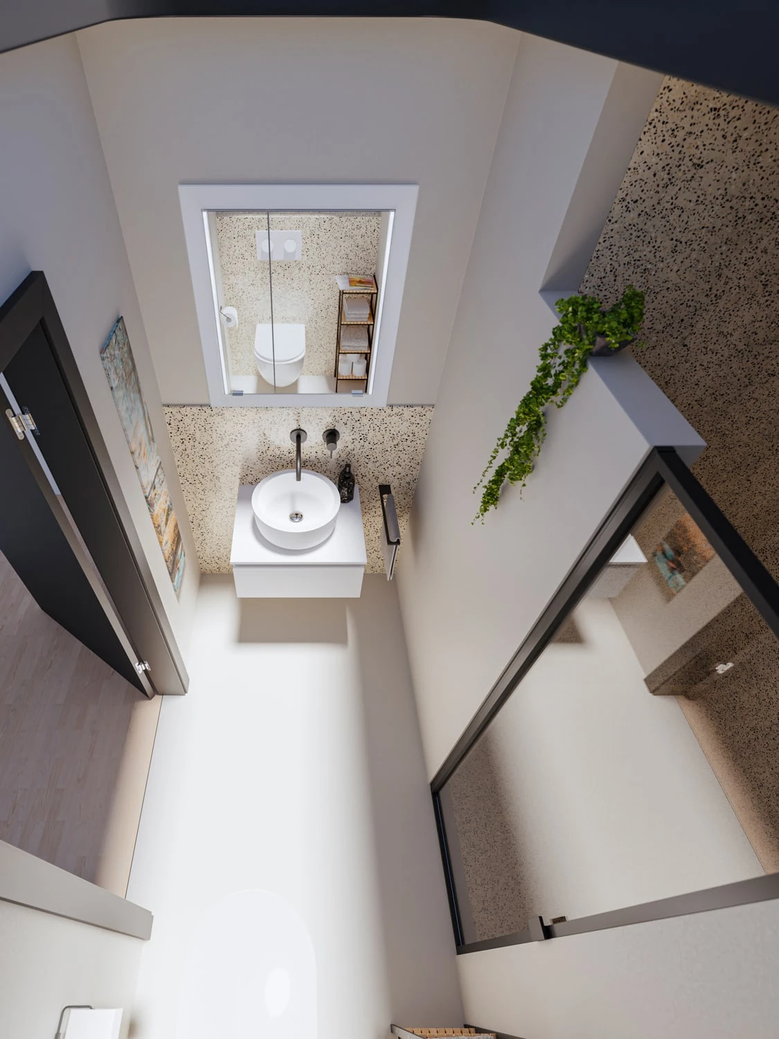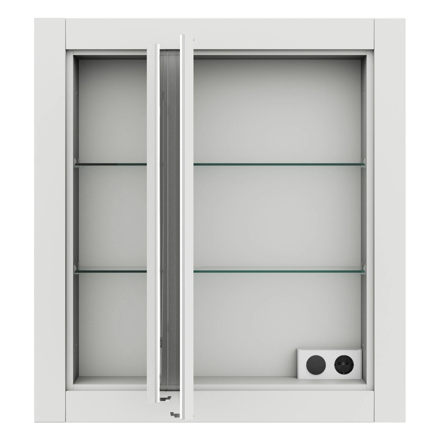 - 1 Steckdose und 1 Schalter unten rechts im Spiegelschrank eingebaut